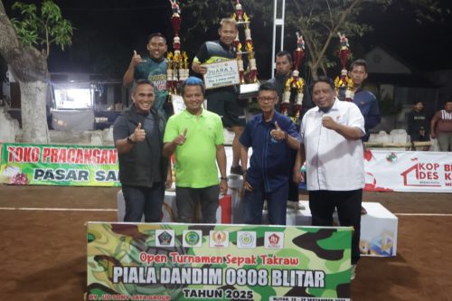 Kegiatan penutupan ini berlangsung lancar, tertib, dan penuh semangat kebersamaan. Selain sebagai ajang olahraga, turnamen sepak takraw Piala Dandim 0808 Blitar ini juga menjadi momentum memperkokoh hubungan antara TNI dengan masyarakat, sekaligus menumbuhkan rasa cinta olahraga di kalangan generasi muda Kabupaten Blitar (Dim0808).***