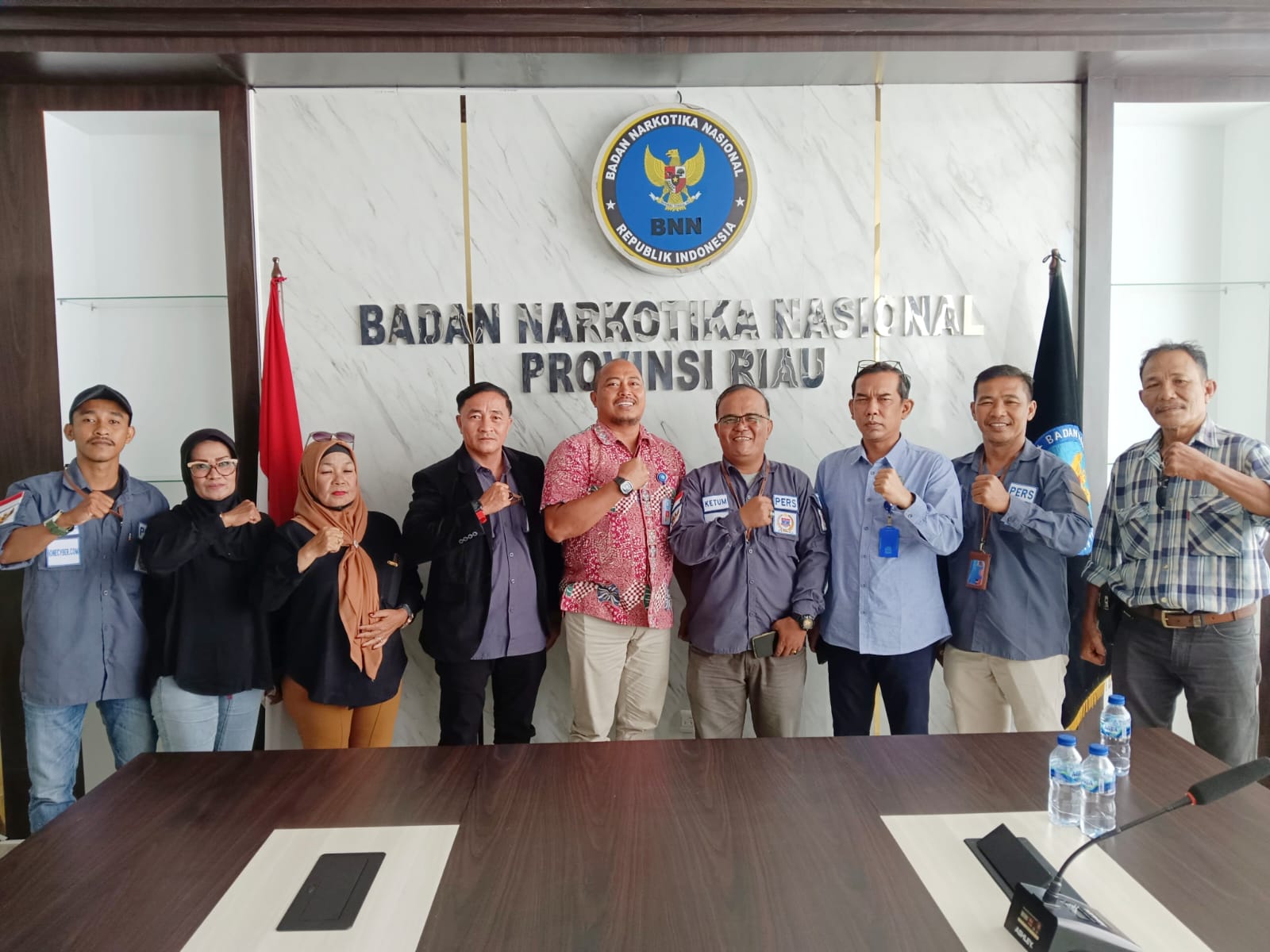 Ketua Umum DPP Solidaritas Wartawan Indonesia Suwandi Erikson Nababan,SH,MH, Sekjend Firman Nazara,SE,MM ,Ketua OKK dan para Kabid DPP SWI turut hadir dan turut berbangga dengan disambutnya kami sangat baik dari BNN Provinsi Riau,”papar Ketum DPP SWI,selang beberapa menit kami disambut baik dengan Kabag Umum Febri Firmanto,SH.,M.Si,Kabid Pemberantasan dan Intelijen BNNP Riau Kombes Ali Machfud diruang kerjanya.