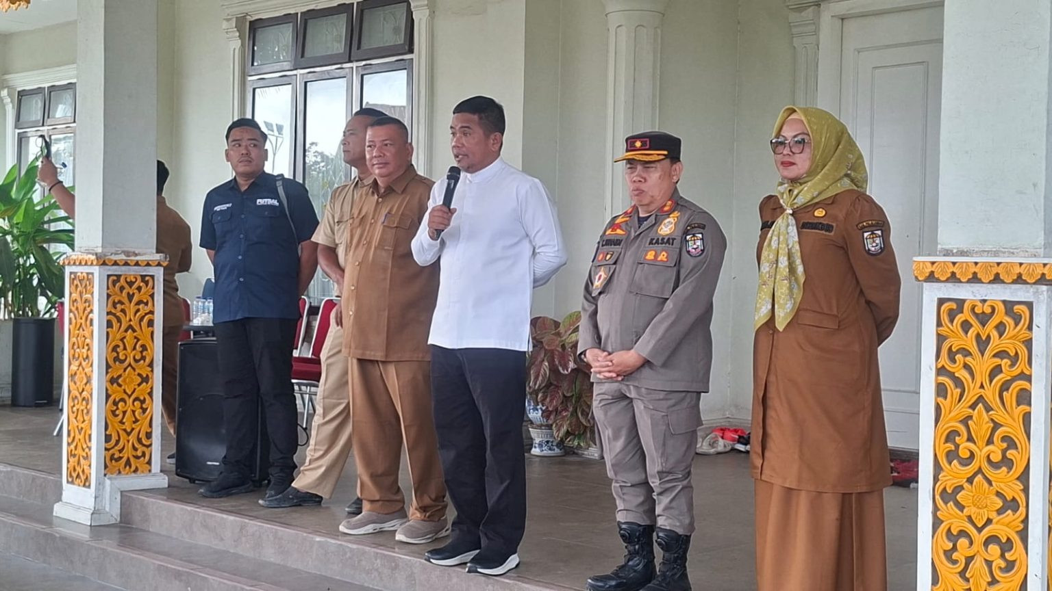 IONECYBER.COM, Pelalawan – Bupati Pelalawan H. Zukri secara resmi melepas Tim Atlet Futsal Kabupaten Pelalawan yang tergabung dalam Asosiasi Futsal Kabupaten Pelalawan (AFKAB) untuk mengikuti Kejuaraan Daerah (Kejurda) Piala Gubernur, Selasa (21/4/2026), di rumah Dinas Bupati Pelalawan. Hadir pada kesempatan tersebut Kasatpol PP Tengku Junaidi, Kadispora Dodi Asma Saputra, Kabid PUPR, serta Kabid Dispora.