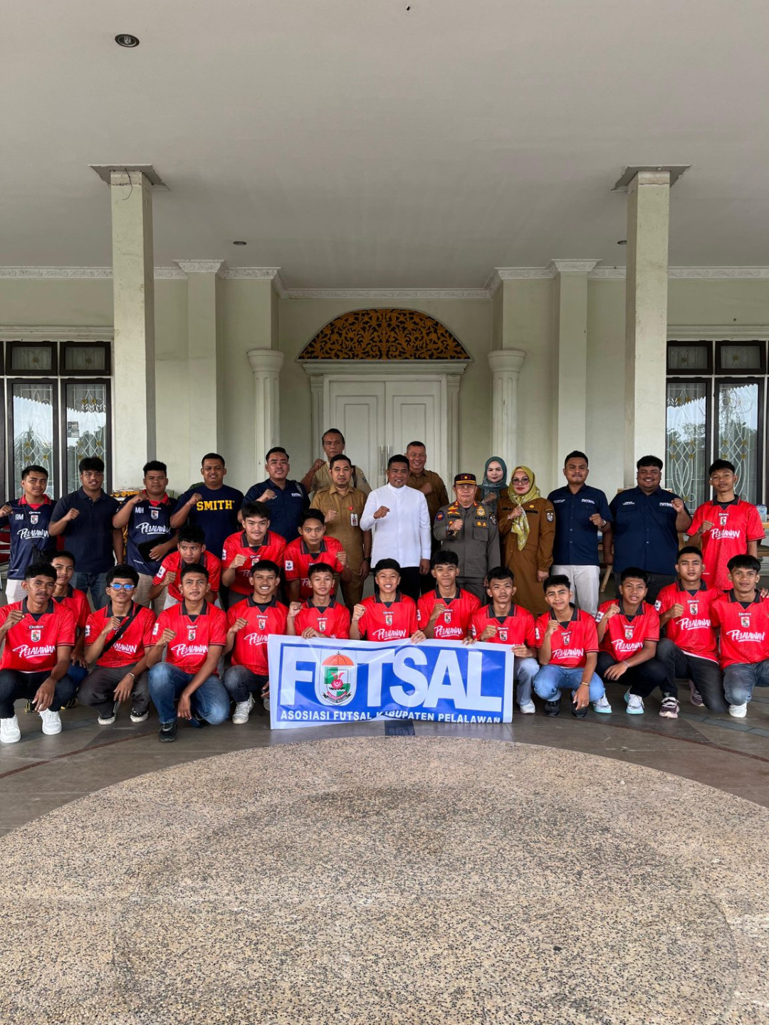 Diakhir acara, Bupati Zukri melakukan photo bersama atlet futsal yang berangkat mengikuti pertandingan Kejurda Piala Gubernur, diikuti dengan bersalam-salaman.***(MC.Pelalawan)