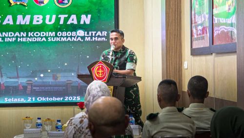 IONECYBER.COM, Blitar – Bertempat di Aula Shodancho Soeprijadi Kodim 0808 Blitar, Jl. A. Yani No. 06 Kelurahan Kepanjenkidul Kota Blitar, telah dilaksanakan kegiatan pengarahan oleh Komandan Kodim 0808/Blitar Letkol Inf Hendra Sukmana, M.Han kepada siswa SMA Negeri 5 Taruna Brawijaya, Selasa (21/10/2025). Kegiatan tersebut diikuti sekitar 25 siswa Taruna dan berlangsung dalam suasana penuh semangat dan kekeluargaan.
