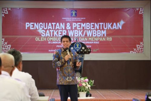 IONECYBER.COM, Pekanbaru – Kantor Wilayah Kementerian Hukum dan HAM Riau menggelar kegiatan Penguatan dan Pembentukan Satuan Kerja Wilayah Bebas Korupsi (WBK) dan Wilayah Birokrasi Bersih dan Melayani (WBBM) di lingkungan Kanwil Kemenkumham Riau Tahun 2024 pada Rabu (08/05/2024) bertempat di Aula Ismail Saleh Kanwil Kemenkumham Riau.