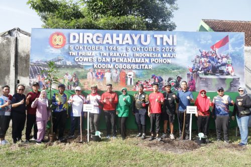 IONECYBER.COM, Blitar – Dalam rangka memperingati Hari Ulang Tahun (HUT) TNI ke-80 tahun 2025 dengan tema “TNI Prima, TNI Rakyat, Indonesia Maju”, dilaksanakan kegiatan Gowes dan Penanaman Pohon di wilayah Kecamatan Wlingi, Kabupaten Blitar, Jumat (26/9/2025). Kegiatan ini diikuti sekitar 350 peserta yang terdiri dari unsur TNI, Forkopimda, Muspika, ASN dan masyarakat.