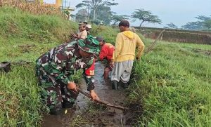 IONECYBER.COM, Blitar – Babinsa secara rutin membersihkan saluran irigasi sawah bersama petani melalui kegiatan gotong royong untuk memastikan aliran air lancar. Babinsa Desa Boro Koramil 0808/21 Selorejo Sertu Yudha Irawanto bersama anggota Kelompok Tani (Poktan) Ngaglik melaksanakan kegiatan pembersihan jalur irigasi sawah, di Dusun Ngaglik Desa Ngreco Kecamatan Selorejo Kabupaten Blitar, pada Sabtu (17/1/2026).