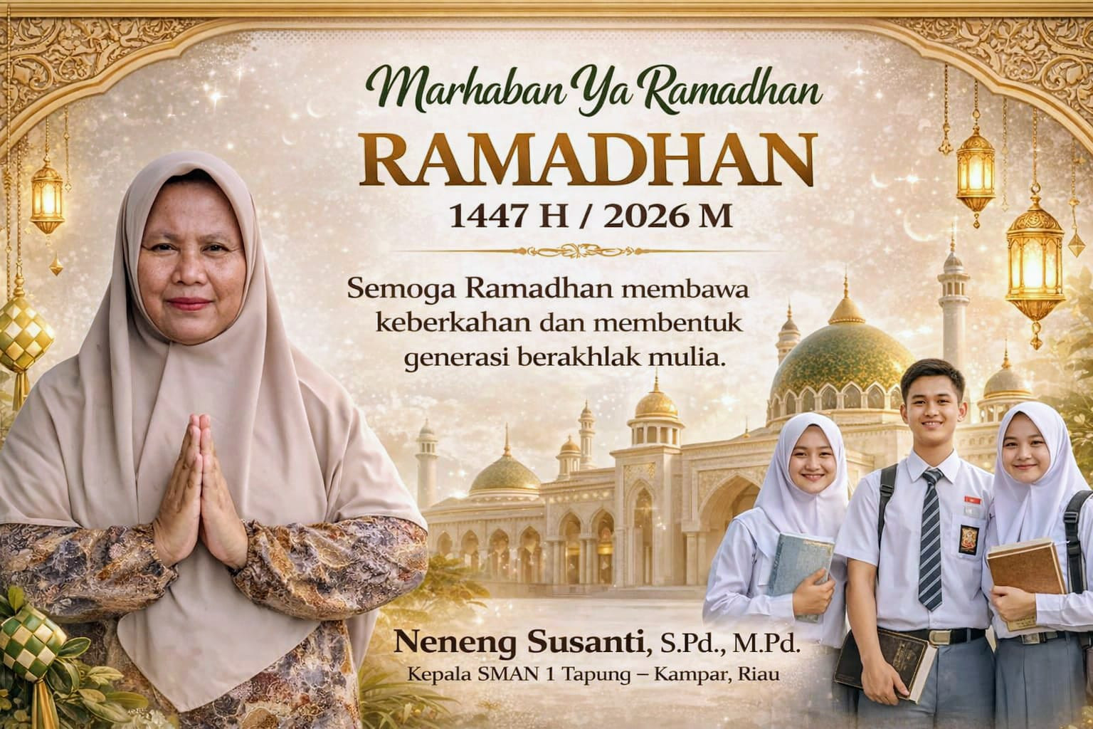 IONECYBER.COM, KAMPAR — Menyambut datangnya bulan suci Ramadhan 1447 Hijriah, Kepala SMAN 1 Tapung Kampar, Neneng Susanti, menyampaikan pesan penuh makna kepada seluruh siswa, guru, dan keluarga besar sekolah agar menjadikan Ramadhan sebagai momentum pembinaan diri dan penguatan karakter.