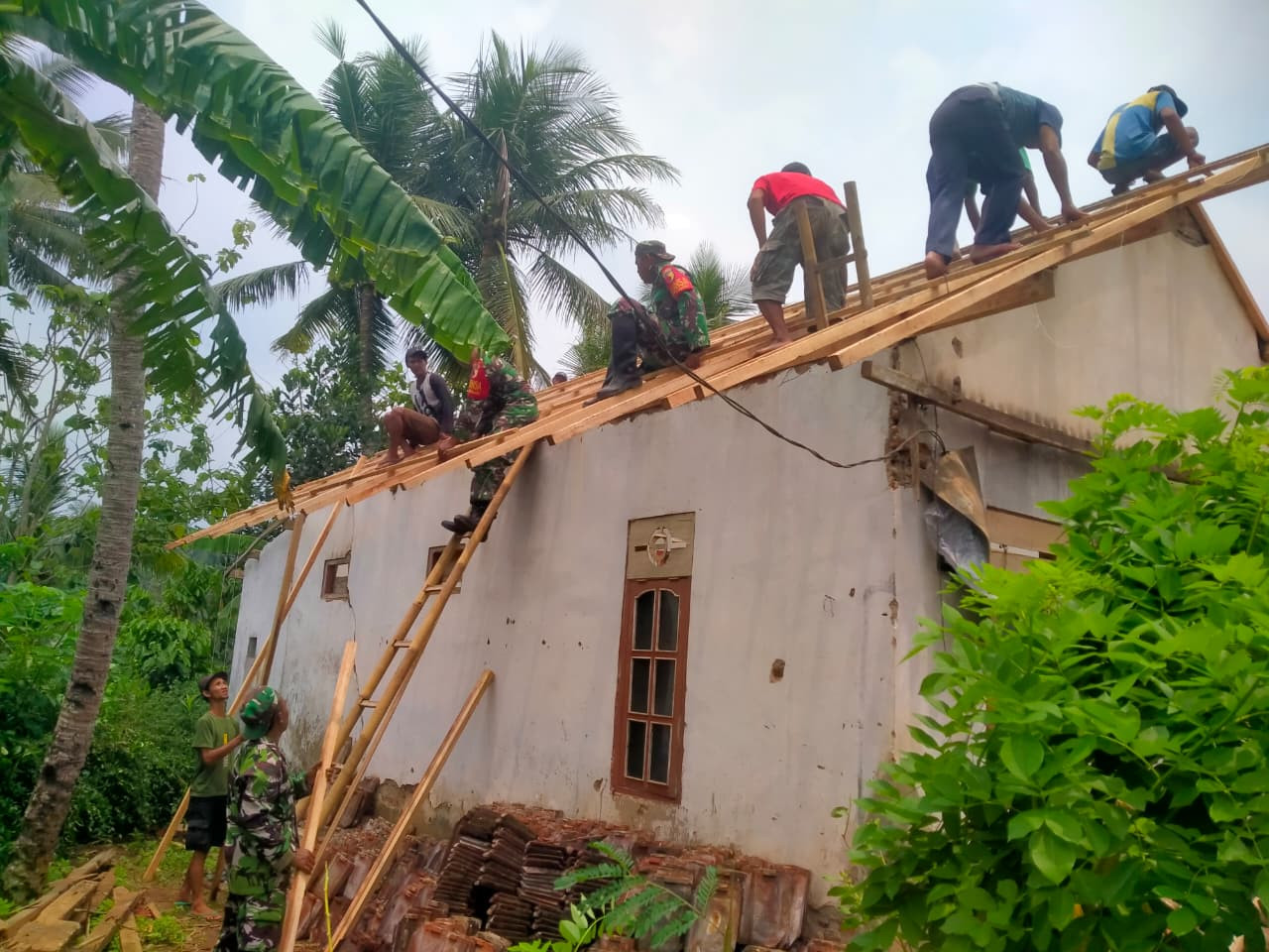 IONECYBER.COM, Blitar – Dalam upaya mewujudkan kepedulian terhadap kesulitan masyarakat di wilayah binaannya, Babinsa Kelurahan Klemunan Koramil 0808/12 Wlingi Sertu Supriyono aktif melaksanakan kegiatan gotong royong bersama warga. Kegiatan tersebut difokuskan pada perehaban atap rumah milik salah satu warga yang dinilai kurang layak huni.